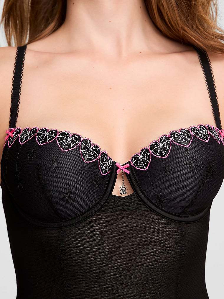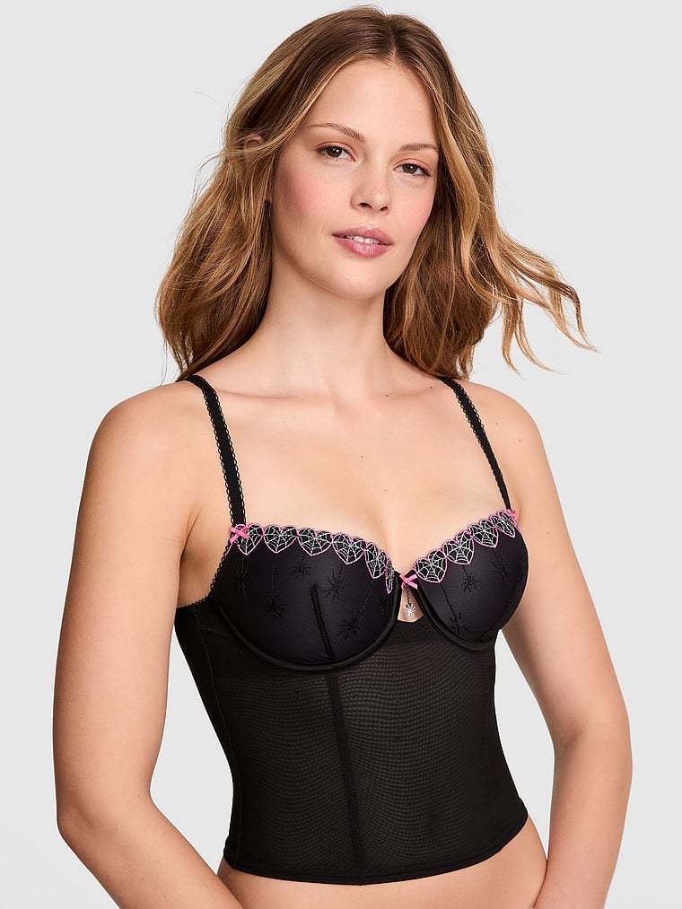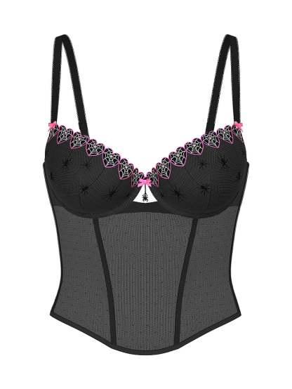 PINK Bralettes & Bra Tops WINK Lightly Lined Balconette Corset Top Spider Web Embroidery