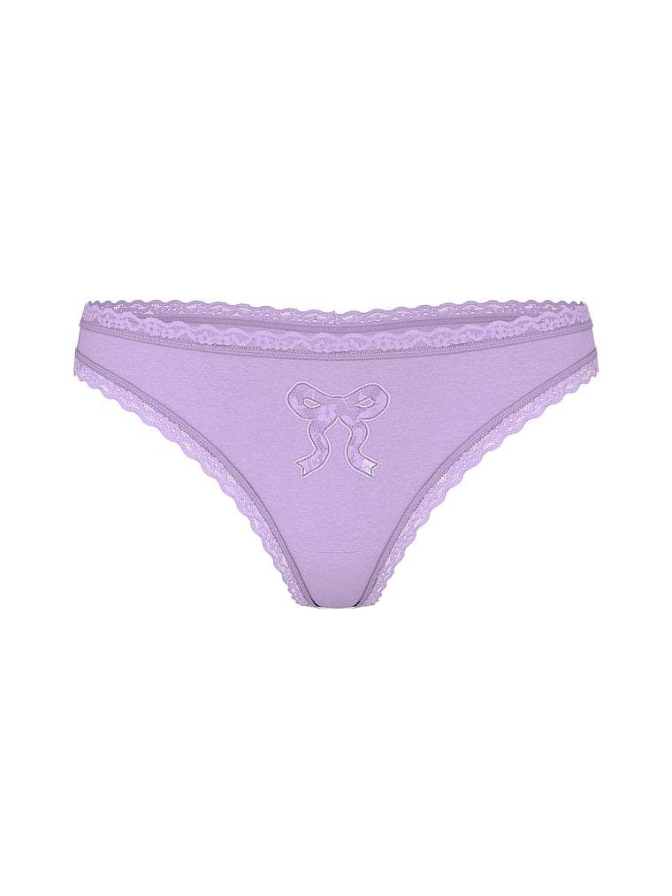 The Lacie Cotton Lace Bow Thong Panty Bow Cutout
