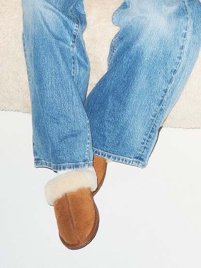 This essential house slipper is cast in soft suede and our signature sheepskin. Pair with a cozy robes or matching cashmere sets for maximal leisure.