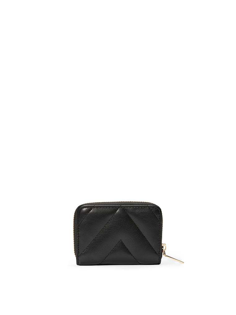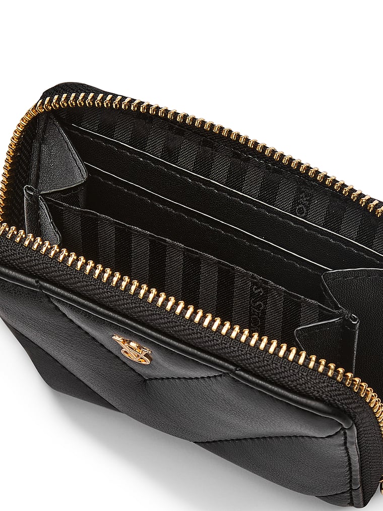 This mini must-have features a classic wrap-around zip and just enough room for your go-to cards and cash. In an allover V-quilt pattern complete with VS logo hardware.